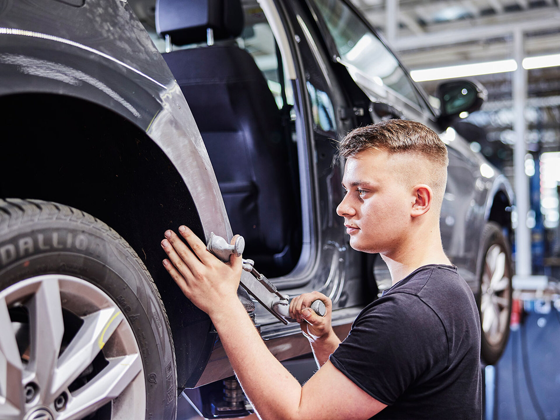 Du reparierst alles vom leichten Kratzer im Blech bis hin zum schweren Unfallschaden und arbeitest Hand in Hand mit den Fahrzeuglackierer/innen. Mit einem computergesteuerten Richt- und Messsystem überprüfst du zudem Fahrzeuge nach einem Crash, damit alles wieder funktioniert und das Auto wieder "geradeaus" läuft.