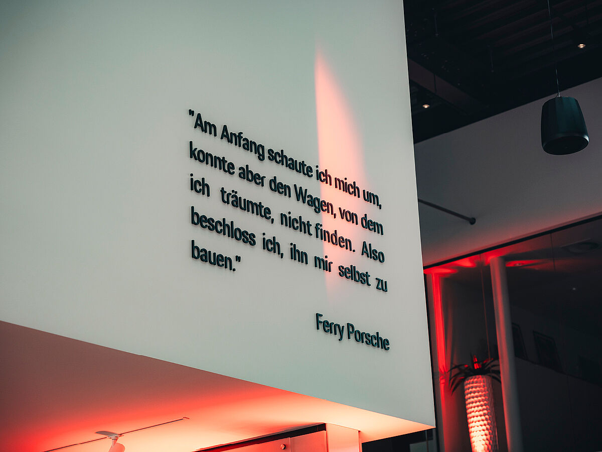 "Am Anfang schaute ich mich um, konnte aber den Wagen, von dem ich träumte, nicht finden. Also beschloss ich, ihn mir selbst zu bauen" sagte einst Ferry Porsche, der den ersten Porsche 356 "Nr. 1" Roadster verwirklichte. Damit begann eine Ära der deutschen Automobilgeschichte. Auch heute ist Porsche führend darin, Ideen, Konzepte und Technologien voranzutreiben – eine Philosophie, die sich auch im neuen Konzept "Destination Porsche" widerspiegelt.